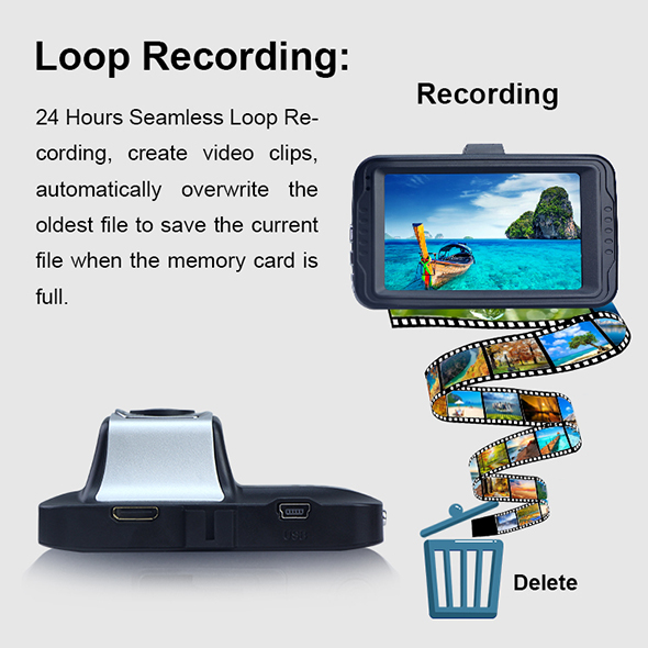 Function :Support rearview camera/G-sensor/Parking guard/ Loop recording/HDMI